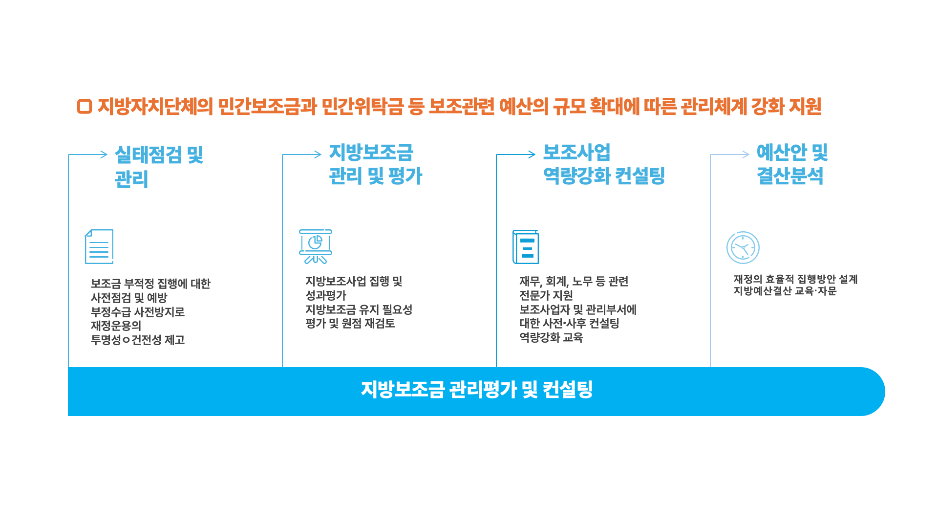 가치경영원은 경영진단, 전략수립, 성과관리 등 다양한 분야의 전문성을 바탕으로, 지방재정의 혁신과 성장에 기여하고 있습니다. 공정하고 객관적인 평가, 그리고 실행 가능한 개선방안 제시를 통해, 고객이 신뢰할 수 있는 든든한 파트너로 자리매김하고 있습니다.